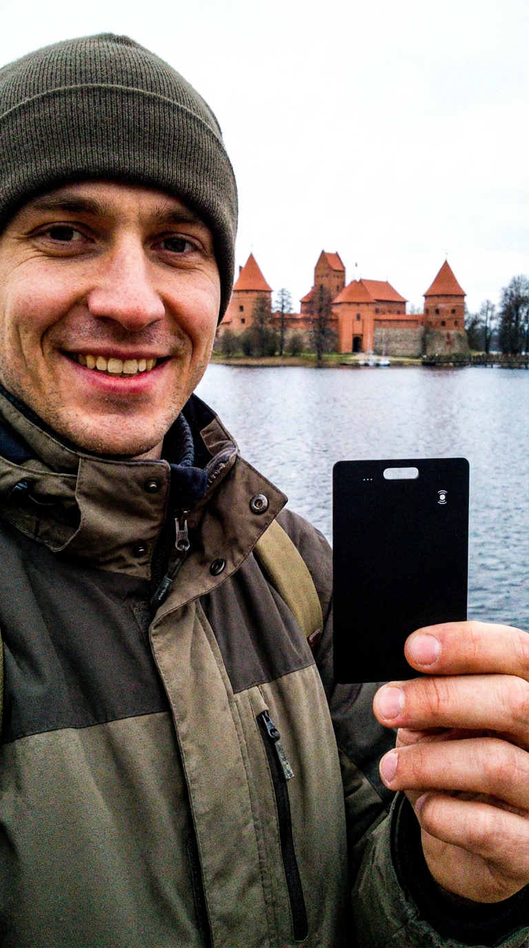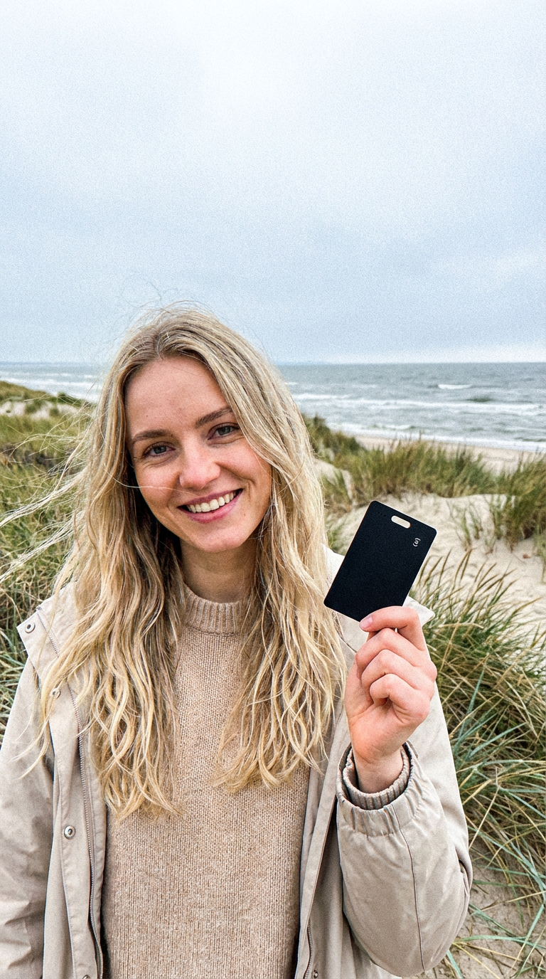 „Nepamesi“ sekimo kortelė pasižymi itin plonu dizainu – vos 1,8 mm storio. Ji lengvai telpa piniginėje, kortelių dėkle ar dokumentų skyriuje, nepridedant papildomo storio ar diskomforto.